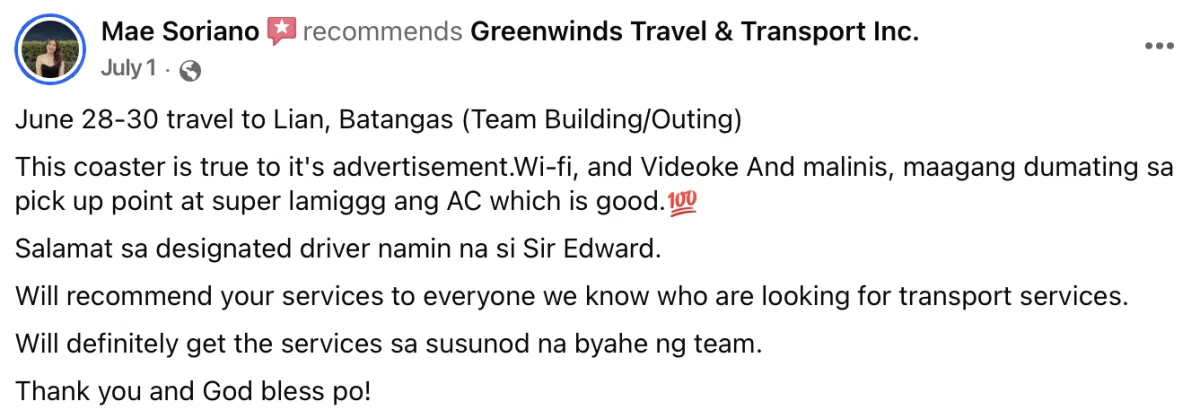 "Baka madaling masira ang aircon ninyo?" We check all vehicles before every trip. We’re serious to bring you comfort. Backup units ready if needed.